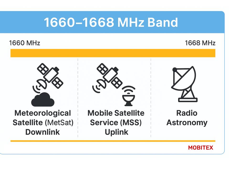In parts of this range — especially 1660.5–1668 MHz — the spectrum is allocated to Mobile Satellite Services for: