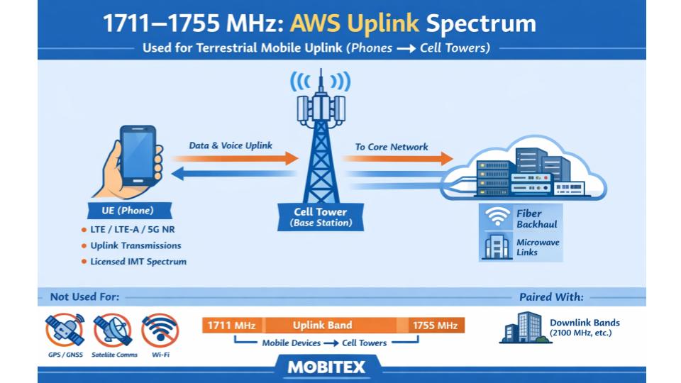 The 1711–1755 MHz frequency band is a cornerstone of modern mobile communications. It forms the uplink portion of the AWS and IMT spectrum, meaning it is used by mobile devices to transmit signals from the ground up to cellular base stations. This band plays a direct role in enabling LTE and 5G networks used daily by billions of people worldwide.