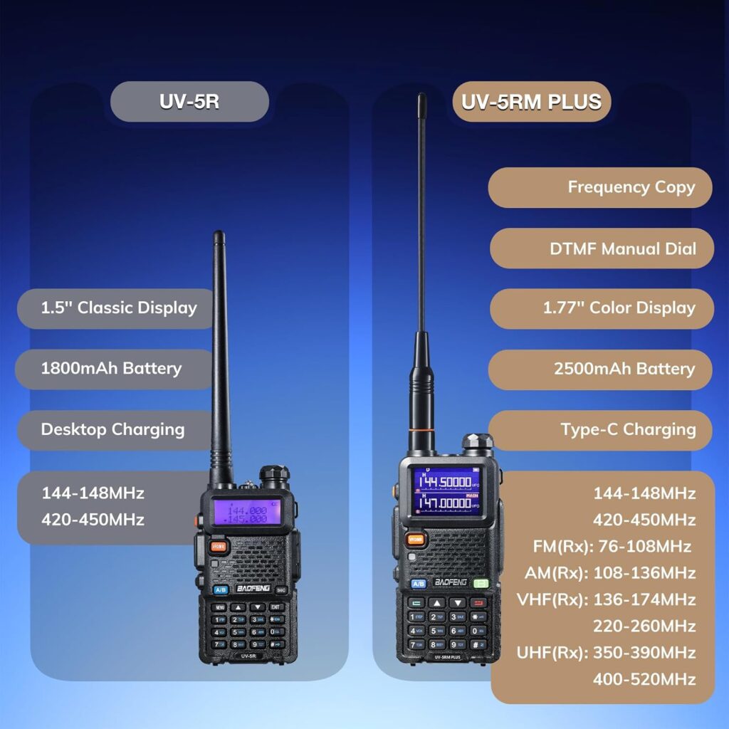 | UV-5R Plus | Metallic finish and enhanced speaker grill | Similar electrical specs to UV-5RM. |