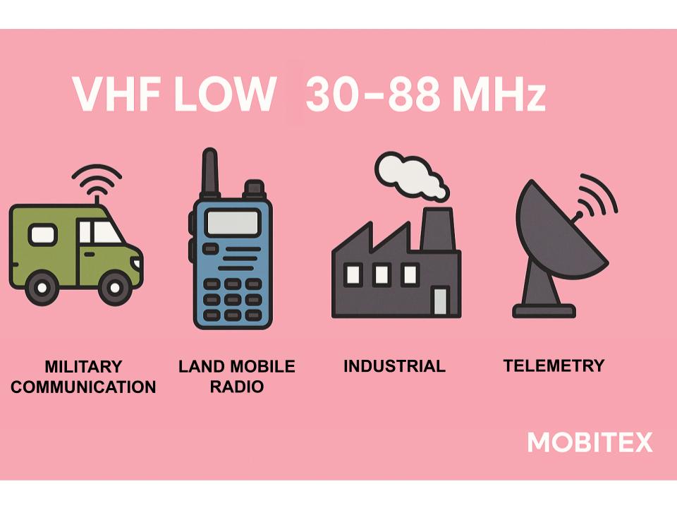 The VHF Low Band is often referred to as the 30β50 MHz or 30β88 MHz range depending on the application. For example, civilian land mobile radio typically uses 30β50 MHz, while military and tactical systems extend up to 88 MHz.
